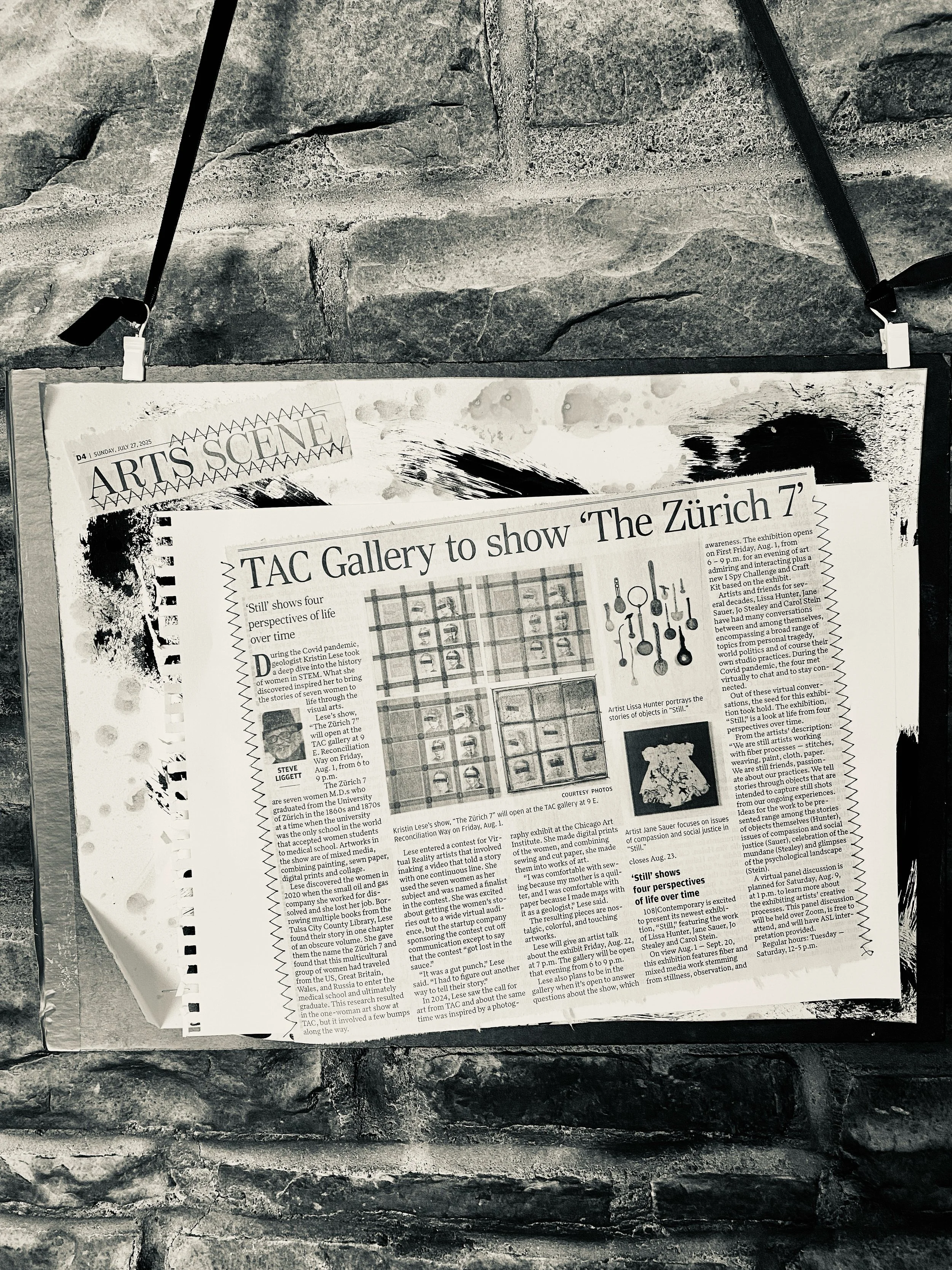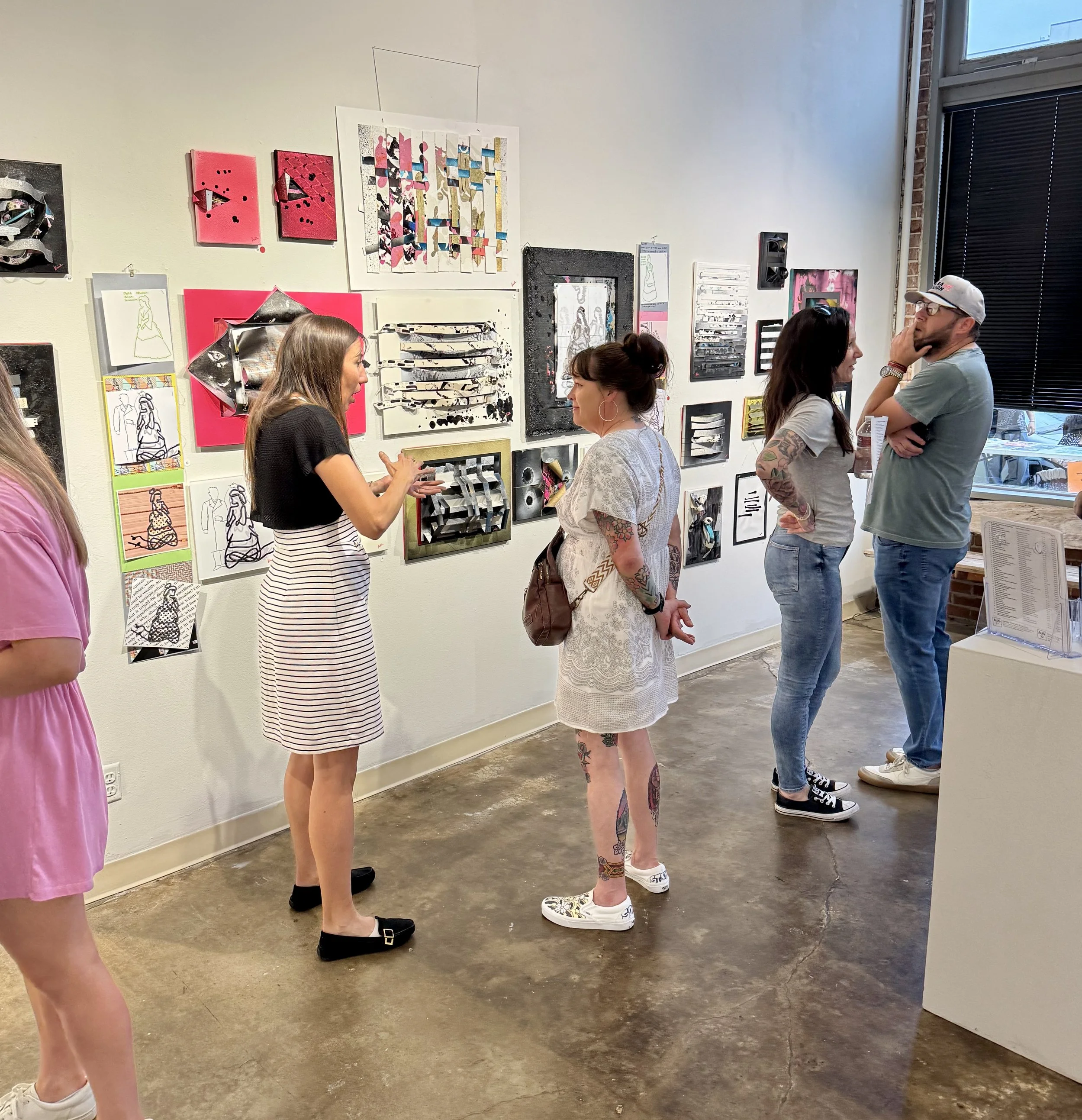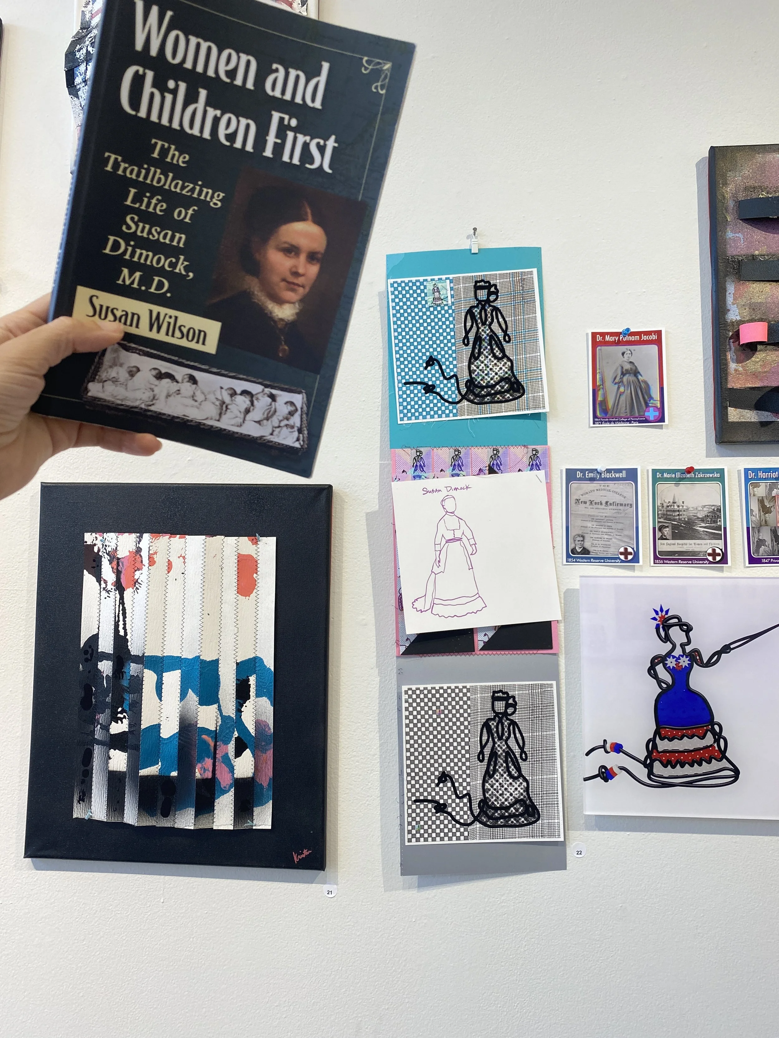 The collection for the TAC Gallery presented August 2025 showcases a combination of art styles. Digital photos, hand-made paper, and acrylic coated canvases were dissected and recombined to illustrate a small part of the story that connects these seven women.